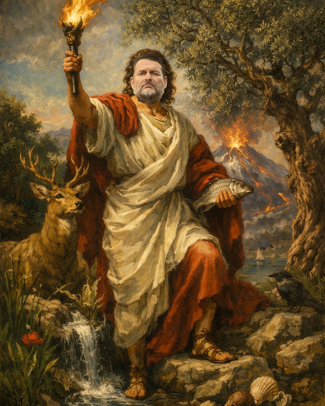 Empedokles (ca. 495–435 v. Chr.) war ein griechischer Philosoph, Dichter und Naturdenker aus Sizilien. Der Legende nach sprang er in den Ätna, um Teil des großen Ganzen zu bleiben. Dieser Gedanke wird in die Gegenwart übertragen: Der Mensch ist heute überall eingeschrieben – wie Plastik in den Weltmeeren.