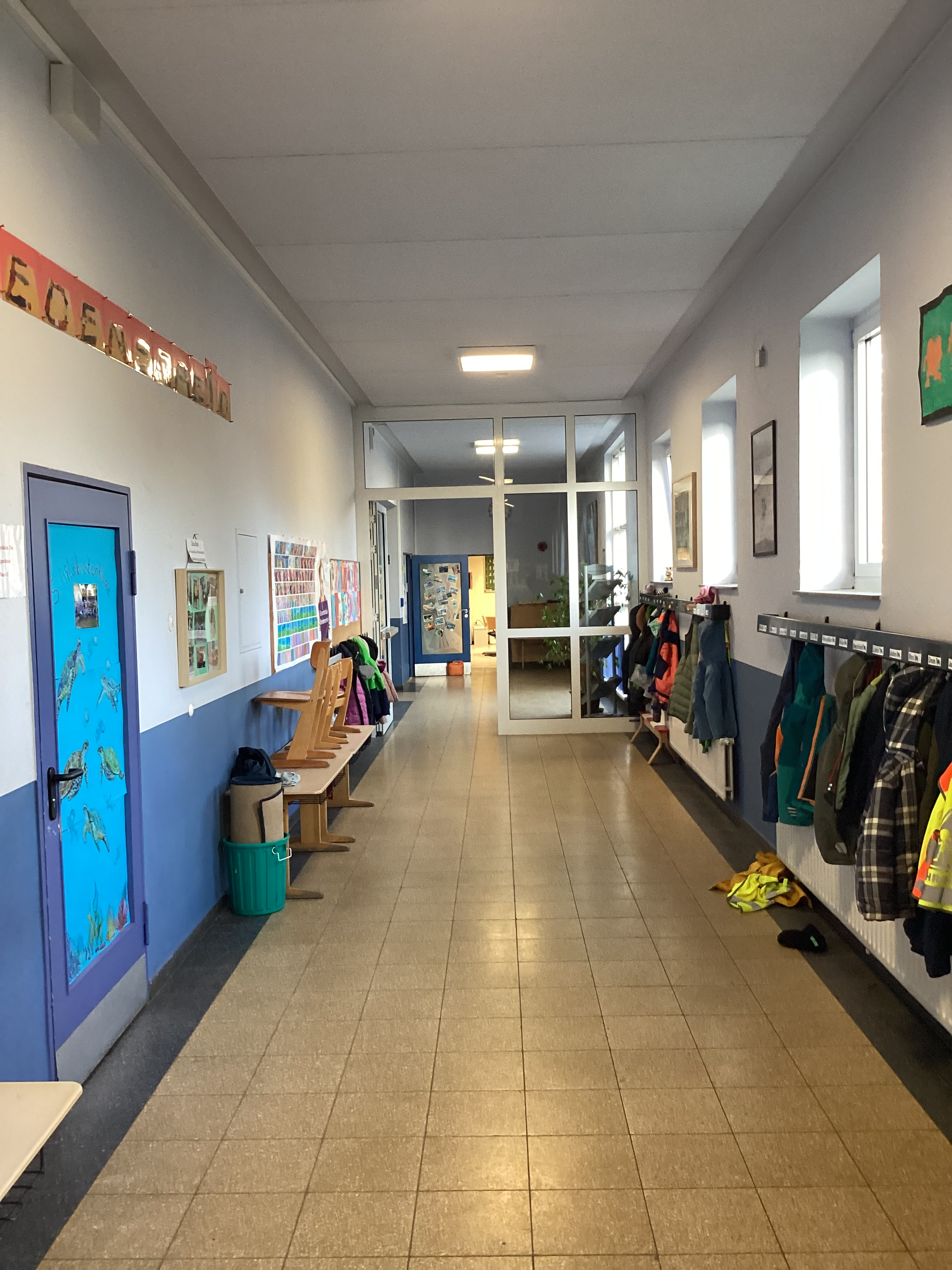 In den Ferien wurde die brandschutztechnische Ertüchtigung an der Grundschule Bredenscheid vorangeführt. Im Bestand verfügte das Untergeschoß am Haupteingang über keinen Flur für die Garderobe (Brandlasten im Treppenhaus) und das gesamte Erdgeschoss hatte keinen zweiten baulichen Rettungsweg. Durch den Einbau der beiden Brandschutztürelemente in den Fluren wurde eine Trennung des Treppenhaueses vom Flur geschaffen und somit ein zweiter baulicher Rettungsweg im Erdgeschoss für die Klassen. Eine Klasse im Erdgeschoß wurde durch eine sogenannte By Pass Tür und einen Durchgangsflur hinter dem Treppenhaus mit einer anderen Klasse verbunden. Das Fenster an der Giebelseite im Dachgeschoss wurde zu einem Notausgangsfenster in Absprache mit der Feuerwehr als zweiter Notausgang umgebaut.