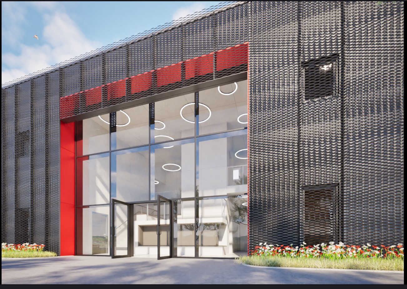 Maßnahmen: Errichtung der eingeschossigen Fahrzeughalle sowie des zweigeschossigen Verwaltungs- und Sozialtraktes.