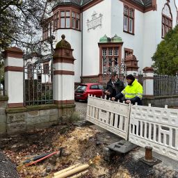 Die alten Gehwegplatten wurden bereits auf einer Strecke von fast 100 Metern entfernt und darunter wurde ausgeschachtet, eine Drainage verlegt und die Fläche anschließend wieder mit Schotter gefüllt. Außerdem wurden die Abläufe zum Kanal eingebaut. Auch die Randsteine und Regenrinnen liegen bereits. Als nächstes werden die neuen sandsteinfarbenen Pflastersteine eingebaut, die wie Schwämme das Wasser aufsaugen können.