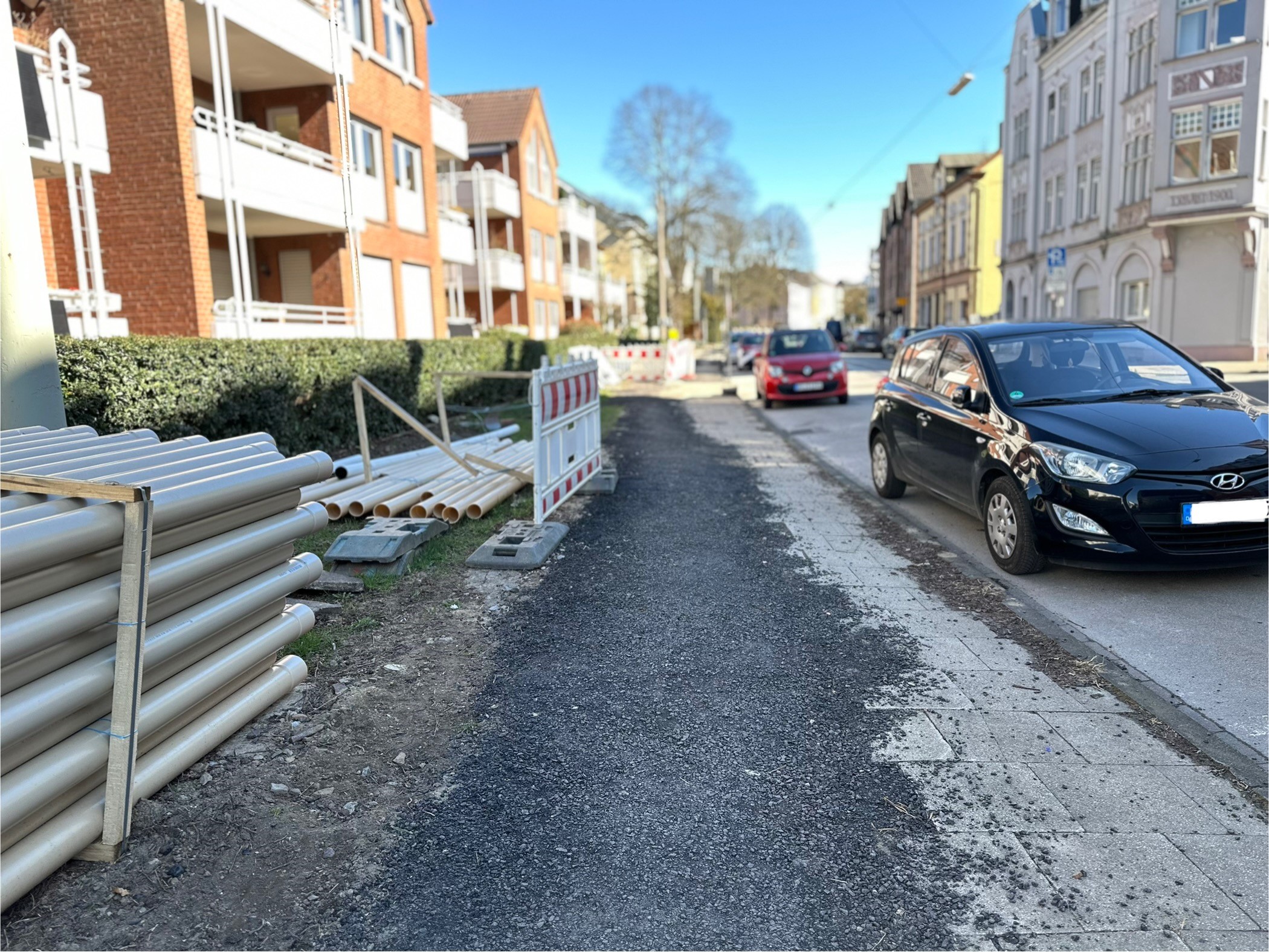 Verschiedene Versorgungsunternehmen haben Leitungen auf der gesamten Bahnhofstraße verlegen lassen. Ebenso wurden unten am Henrichsteich von dem gleichen Bauunternehmen Stromleitungen verlegt.