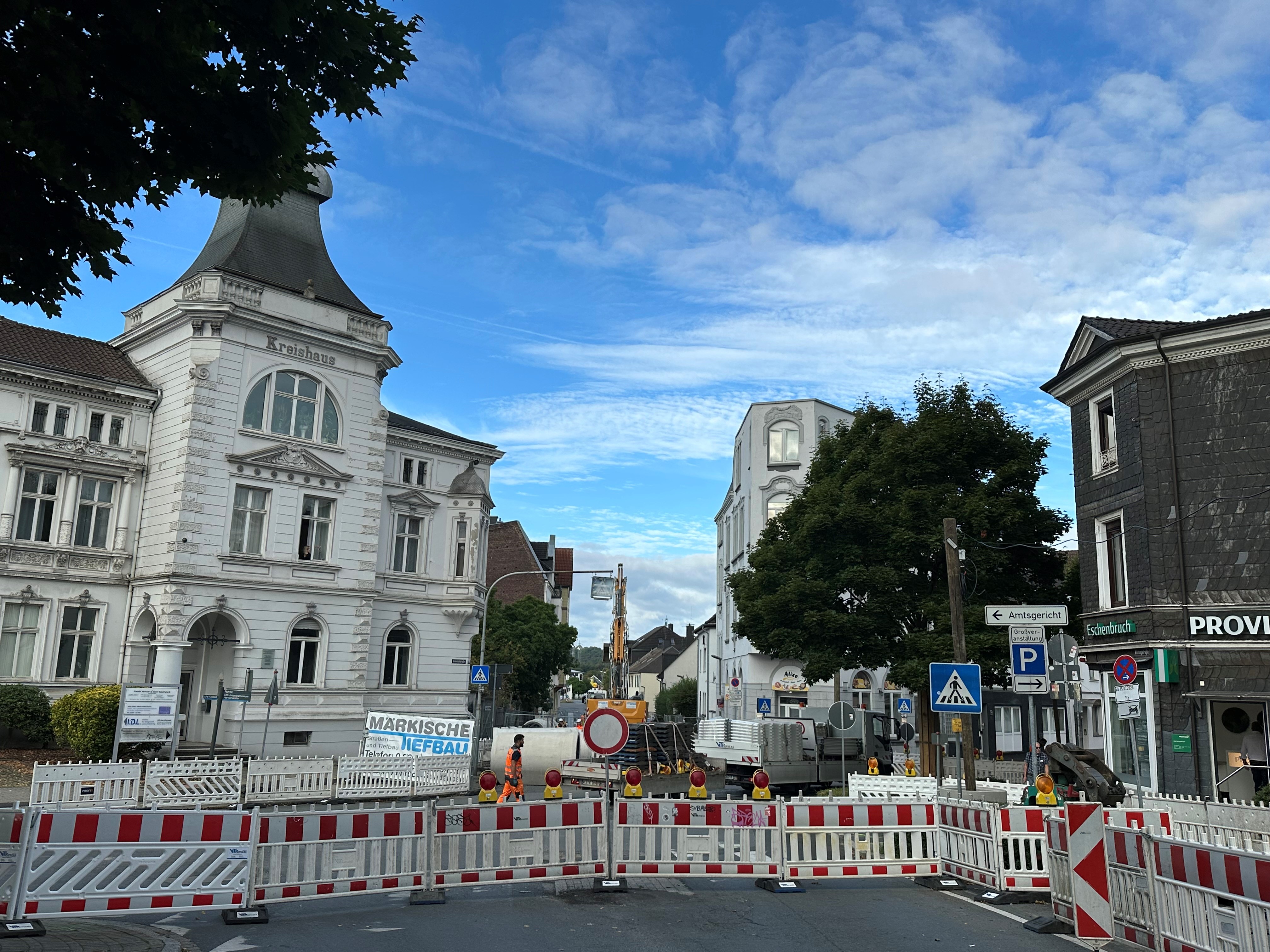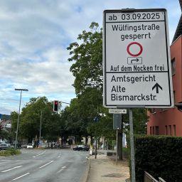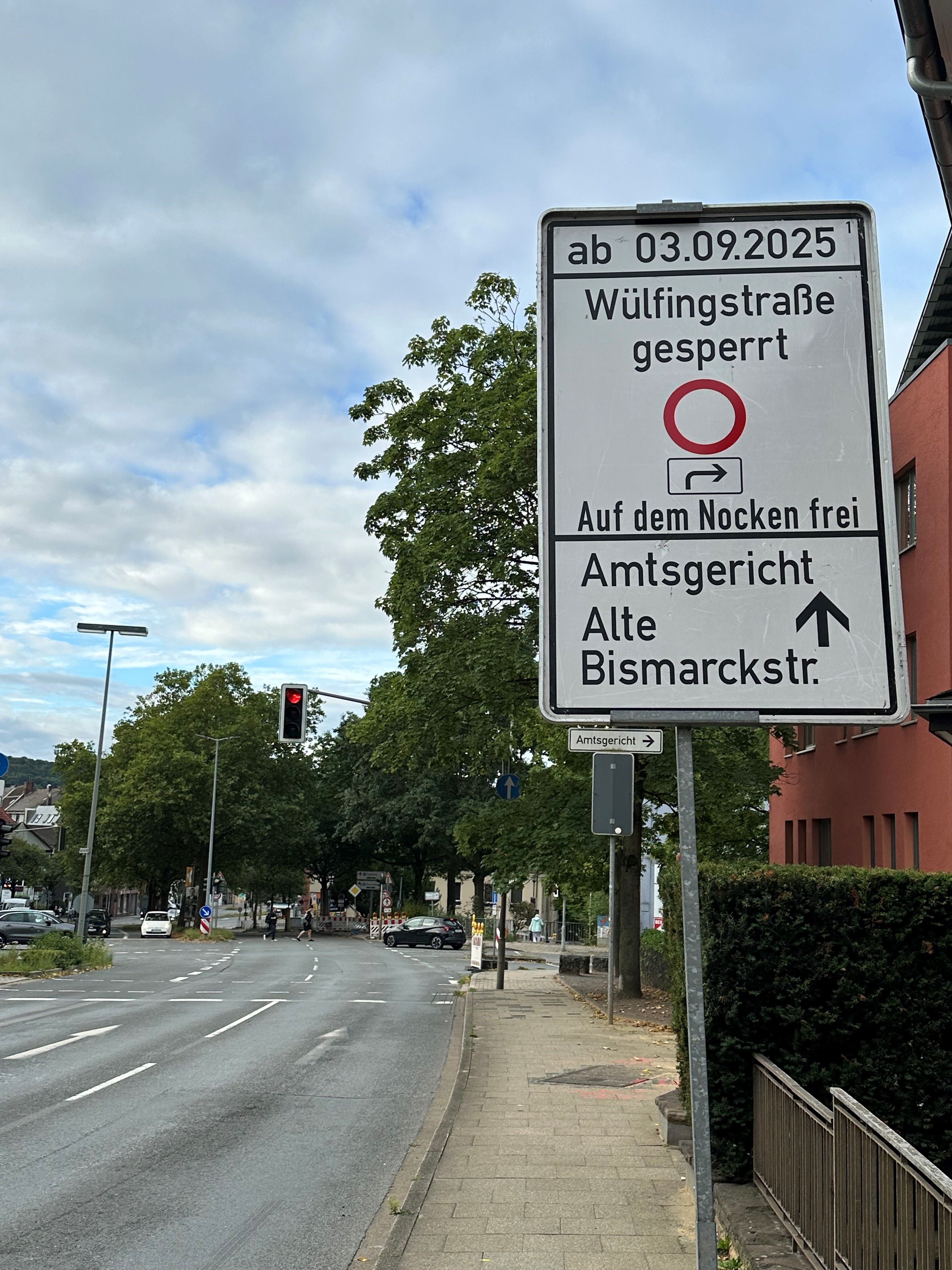 Die Kreuzung Wülfingstraße/Bahnhofstraße/Kreisstraße ist wegen der Kanalbauarbeiten des Ruhrverbandes bis voraussichtlich Ende Oktober gesperrt. Die Zufahrt zum Amtsgericht und zu den Häusern Bahnhofstraße 7 - 28 erfolgt über die provisorisch angelegte Ausfahrt Alte Bismarckstraße.