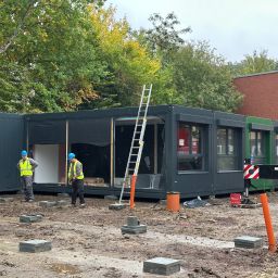 Klassenräume. Die Module für das zweigeschossige Gebäude wurden im
