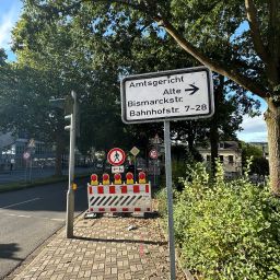 Die Kreuzung Wülfingstraße/Bahnhofstraße/Kreisstraße ist wegen der Kanalbauarbeiten des Ruhrverbandes bis voraussichtlich Ende Oktober gesperrt. Die Zufahrt zum Amtsgericht und zu den Häusern Bahnhofstraße 7 - 28 erfolgt über die provisorisch angelegte Ausfahrt Alte Bismarckstraße.